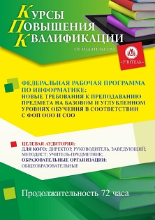 Федеральная рабочая программа по информатике: новые требования к преподаванию предмета на базовом и углубленном уровнях обучения в соответствии с ФОП ООО и СОО (72 ч.)