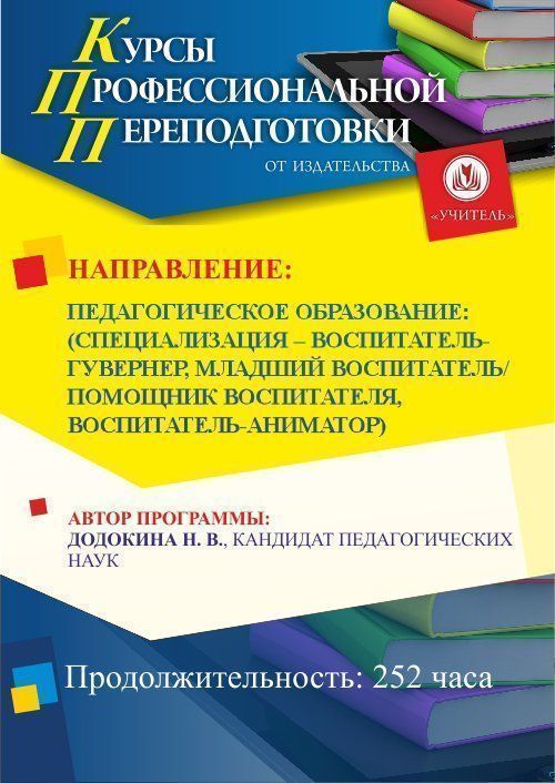 Педагогическое образование: специализация по выбору: воспитатель-гувернёр / младший воспитатель / помощник воспитателя / воспитатель-аниматор (252 ч.)