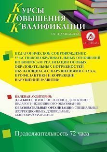 Педагогическое сопровождение участников образовательных отношений по вопросам реализации особых образовательных потребностей обучающихся с нарушениями слуха, профилактики и коррекции нарушений развития (72 ч.)