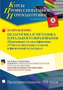 Педагогика и методика начального образования. Присваивается квалификация Учитель начальных классов и физической культуры (550 ч.)