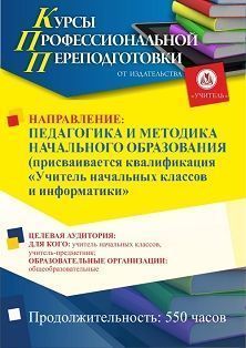 Педагогика и методика начального образования. Присваивается квалификация Учитель начальных классов и информатики (550 ч.)