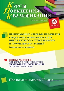 Преподавание учебных предметов социально-экономического цикла в классах углубленного и профильного уровней (экономика, география) (72 ч.)